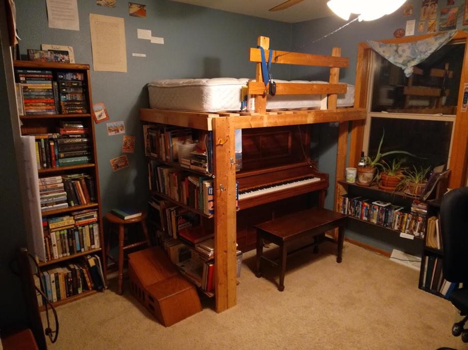 In other news, the traveling kiddo moved into her very first apartment this weekend. Maybe that was where we contracted the pinkeye. Larry even woke up to bid her farewell on her last night above the piano.