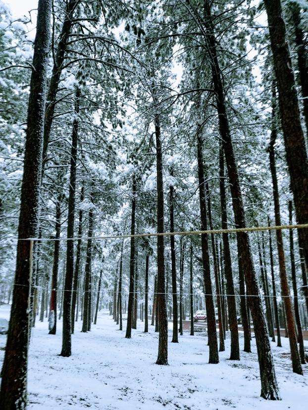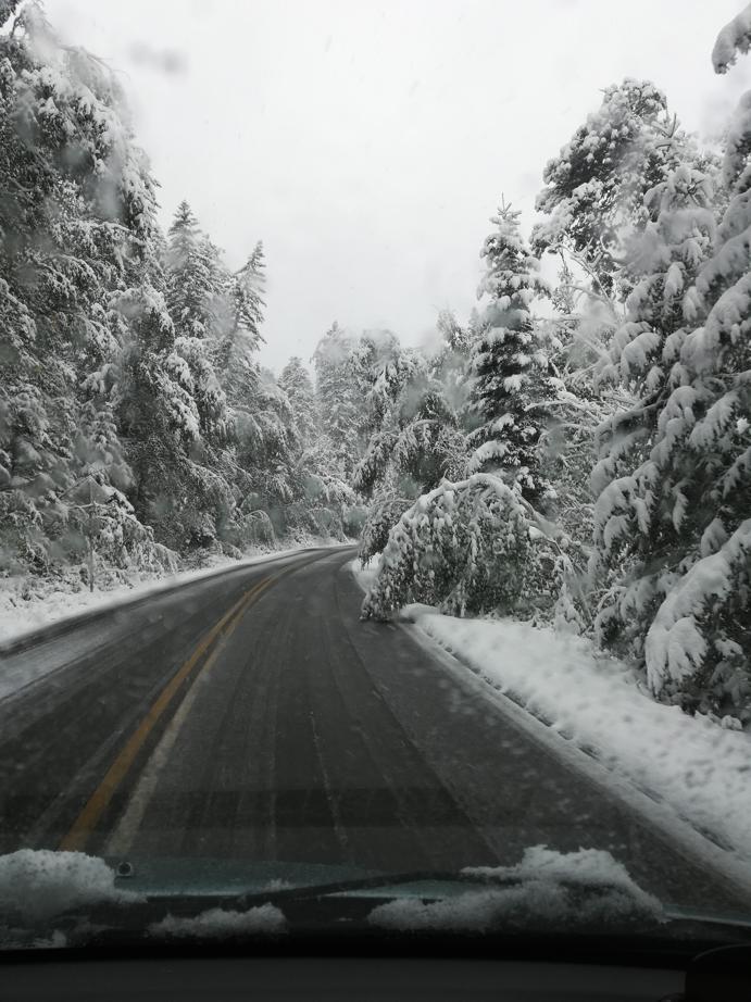 The Ponderosas were doing what they do best, holding the snow like champs, but the still fully-leafed aspen and birch and oak were struggling like me under a portage pack.
