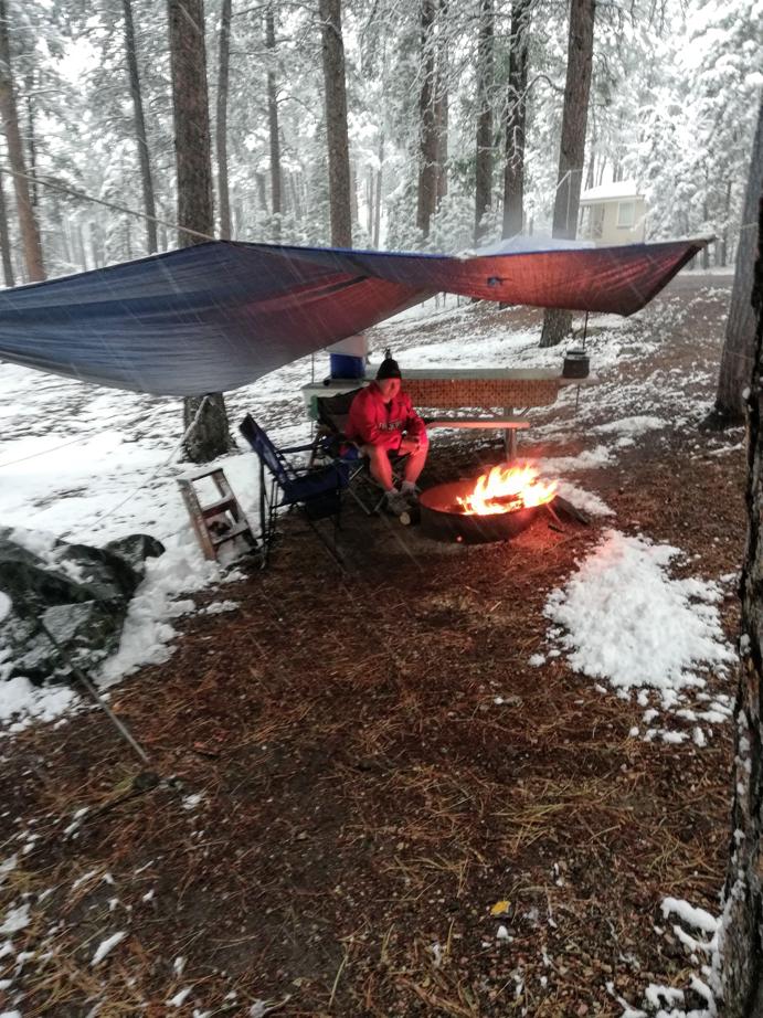 By 6pm, 4 hours of rain turned over to snow, and we were fully hunkered down for the night.