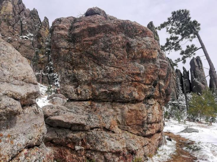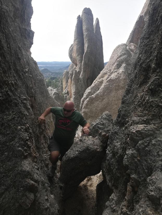 So Black Elk Peak is up there. My bum ankle did mostly fine all the way up, although these old lungs were feelin’ the strain. But about half way down, things started going south in the southerly reaches of the old bod. The ankle was, frankly, done. And the knees twain also tapped out. We took the s-l-o-w b-o-a-t down the mountain, for sure. A geriatric with twin hiking sticks taller than him passed us like we were standing still. I only cried a little.