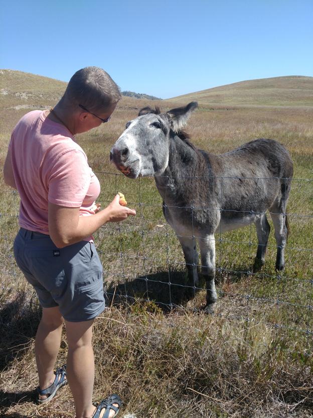 Custer is famous for their Begging Burros, a thing we didn’t know when we drove through 8 years ago, and were astounded to be met on the road by hordes of donkeys climbing in our windows asking politely for a little smackerel of something.