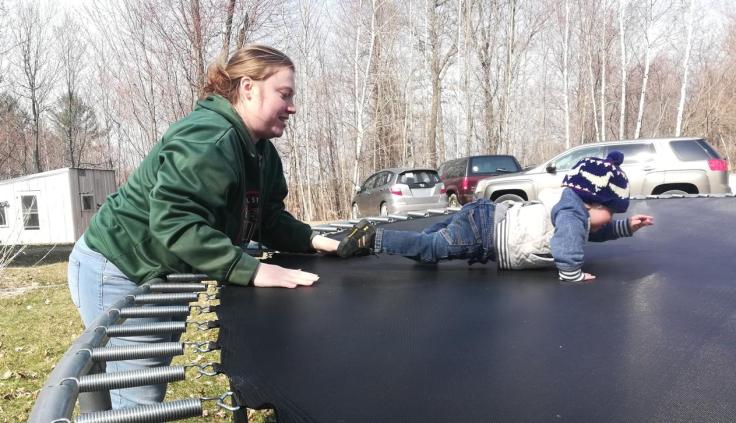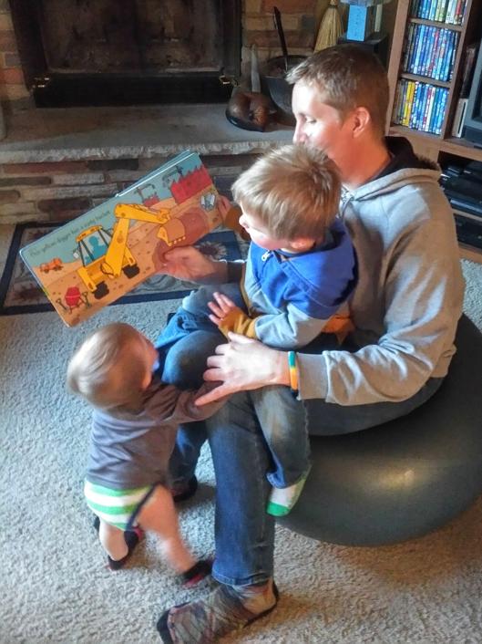We had a nice, long day of stories and Little People and bouncing and trucks and dragging and walking and swinging and a great deal of eating.